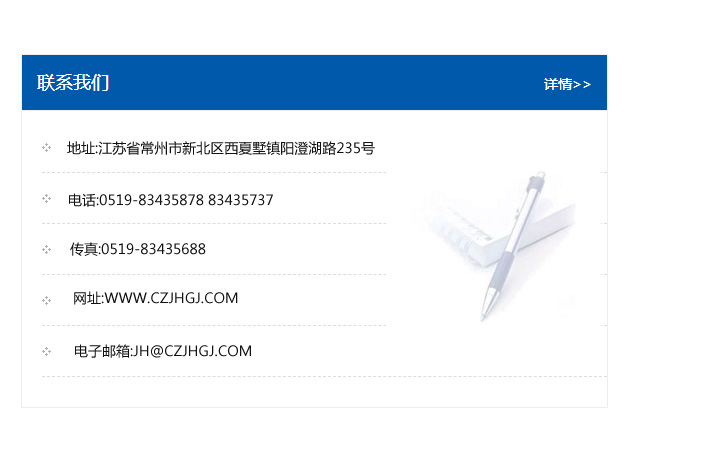 地址:常州市新北區友邦商務大廈1幢16、17層  電話:0519-85101652  傳真:0519-85112595  郵編:213022  網址:www.cz-jiayue_cn.suzhoutaigao.com  郵箱:xiajifengaa@163.com